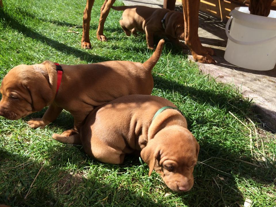 Heute war der erste Kontakt mit dem "Feind". Kaum war der Fuchs im Welpenhaus ausgelegt, da kamen alle schon sehr interessiert angelaufen. Sehr schön. Das Interesse ist sichtlich da. Und Mutti zeigt wies geht.