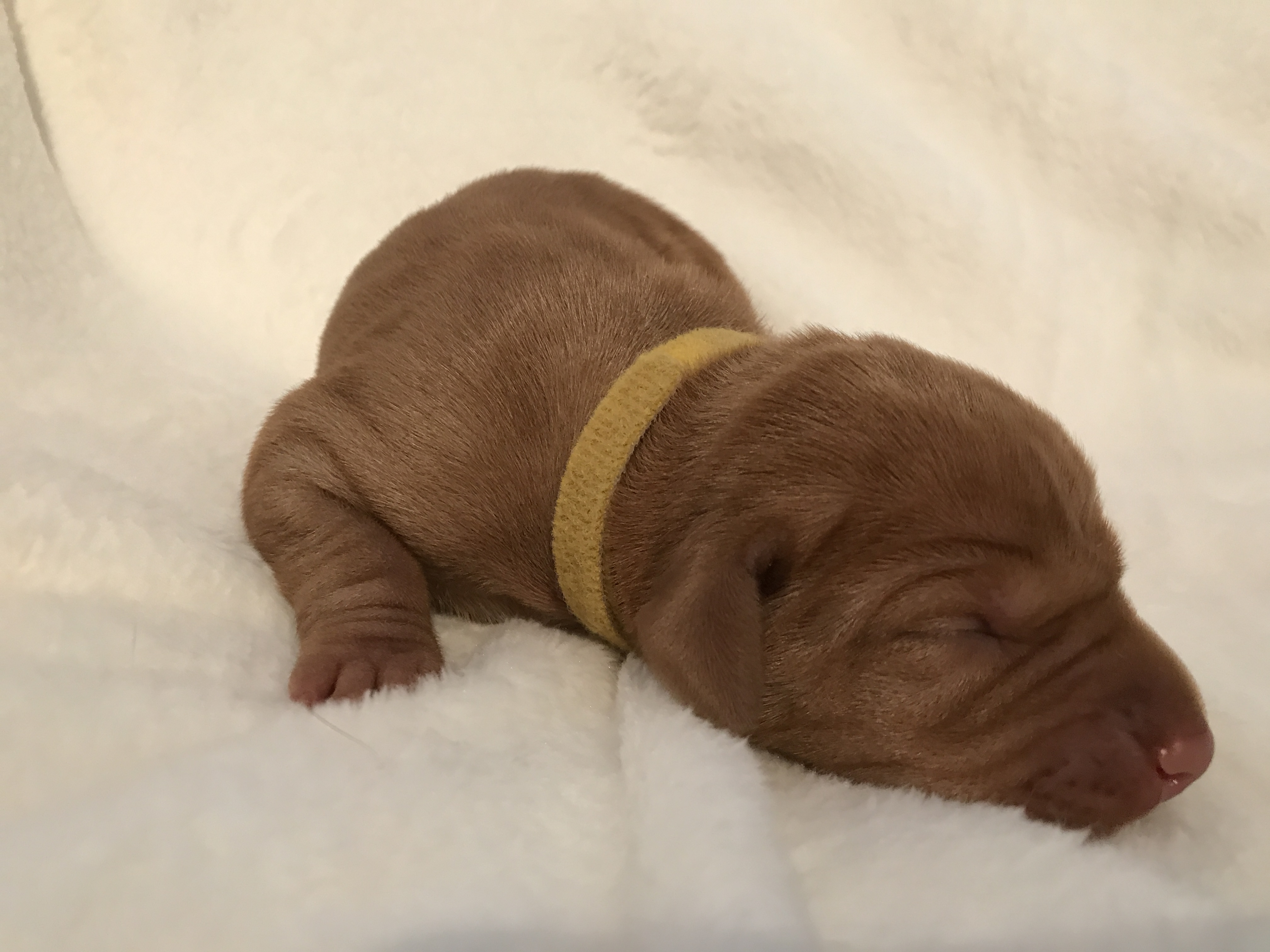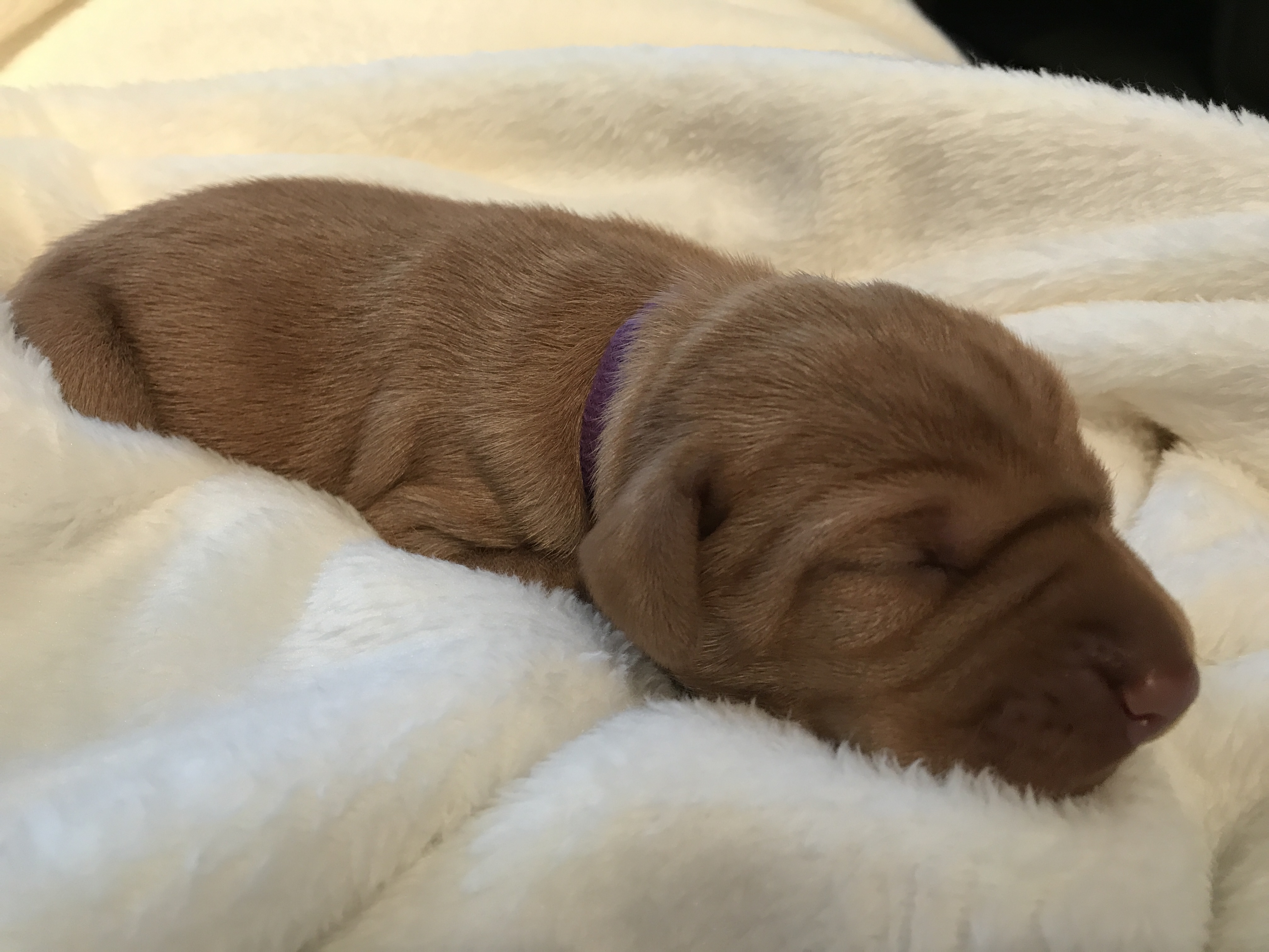 Welpe Nr. 5 "Misses lila" Uhrzeit: 18:25 Geburtsgewicht 440g semmelgelb |