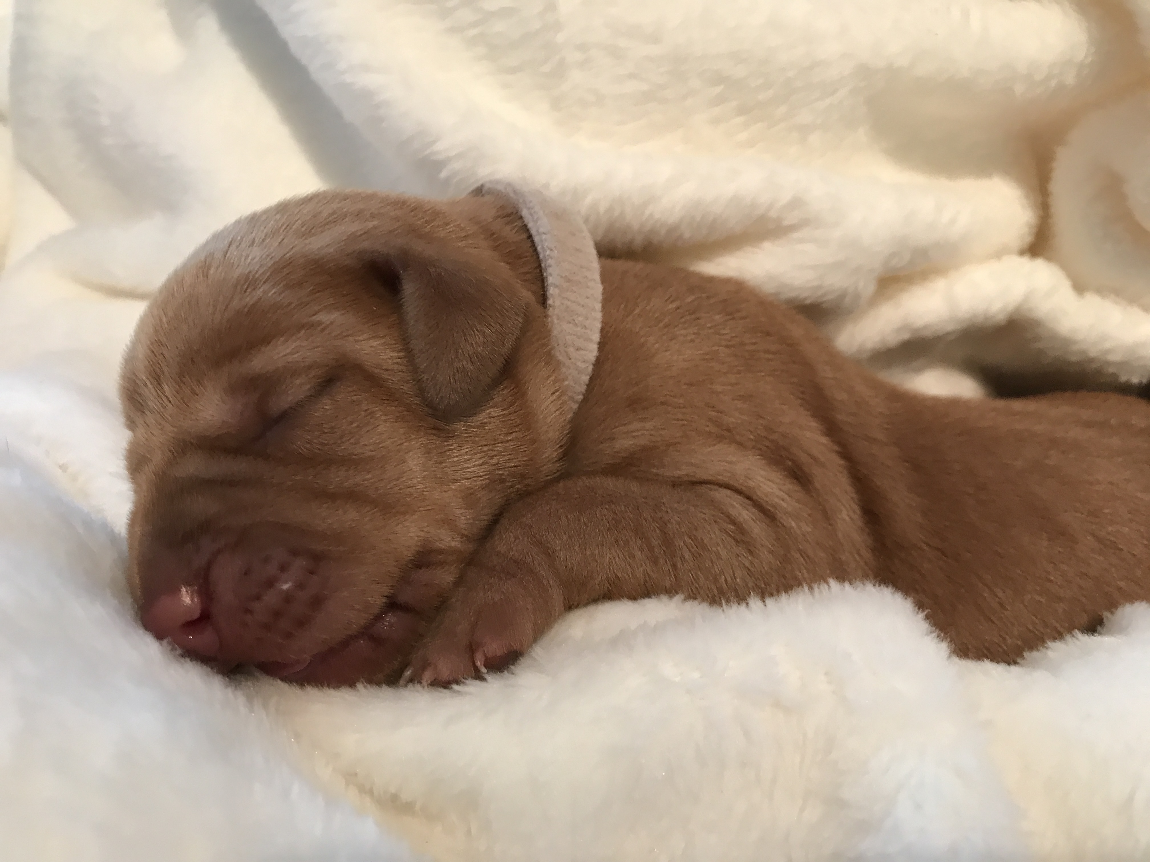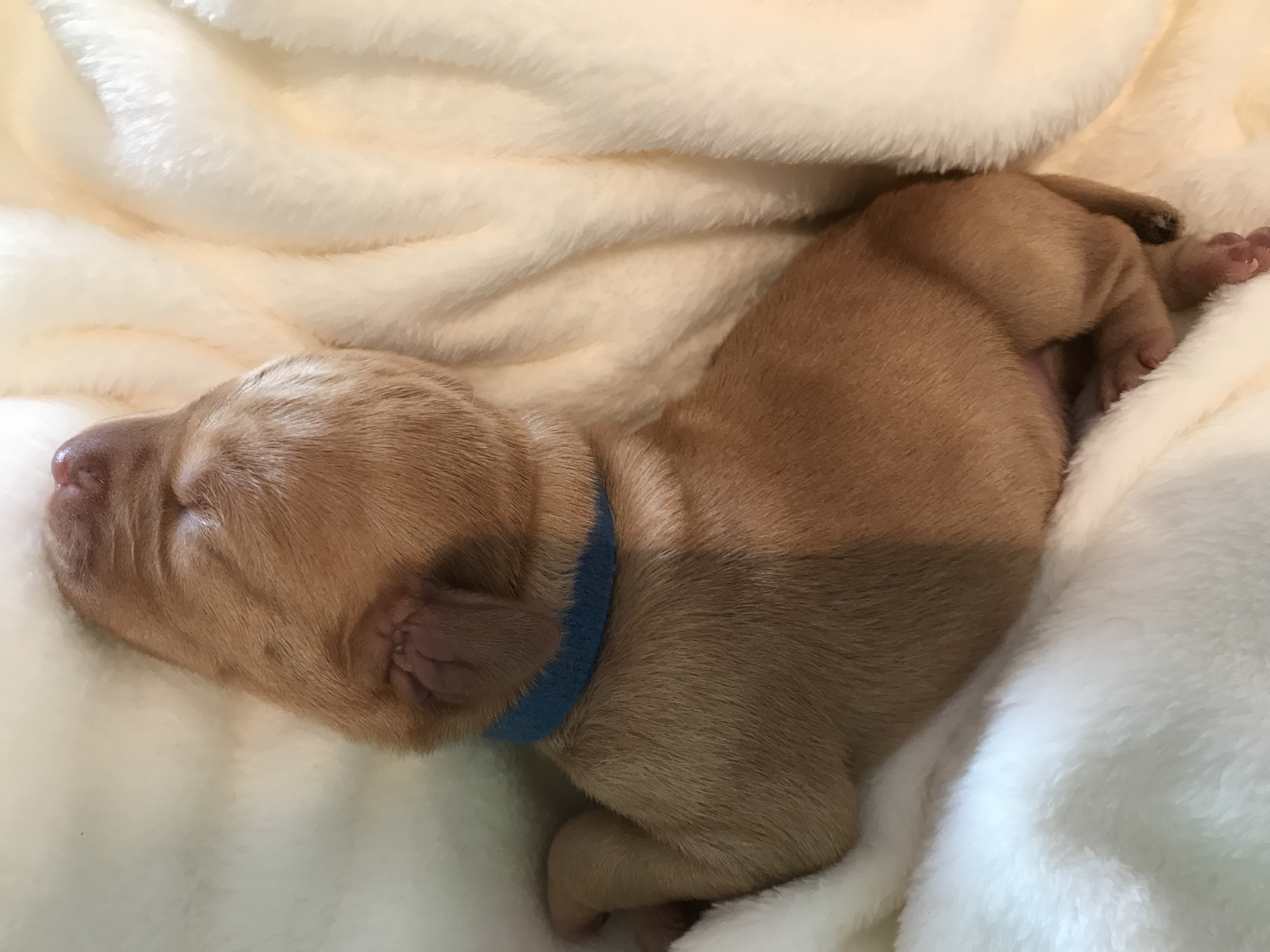 Welpe Nr. 3 "Misses blau" Uhrzeit: 16:58 Geburtsgewicht 390g hellsemmelgelb |
