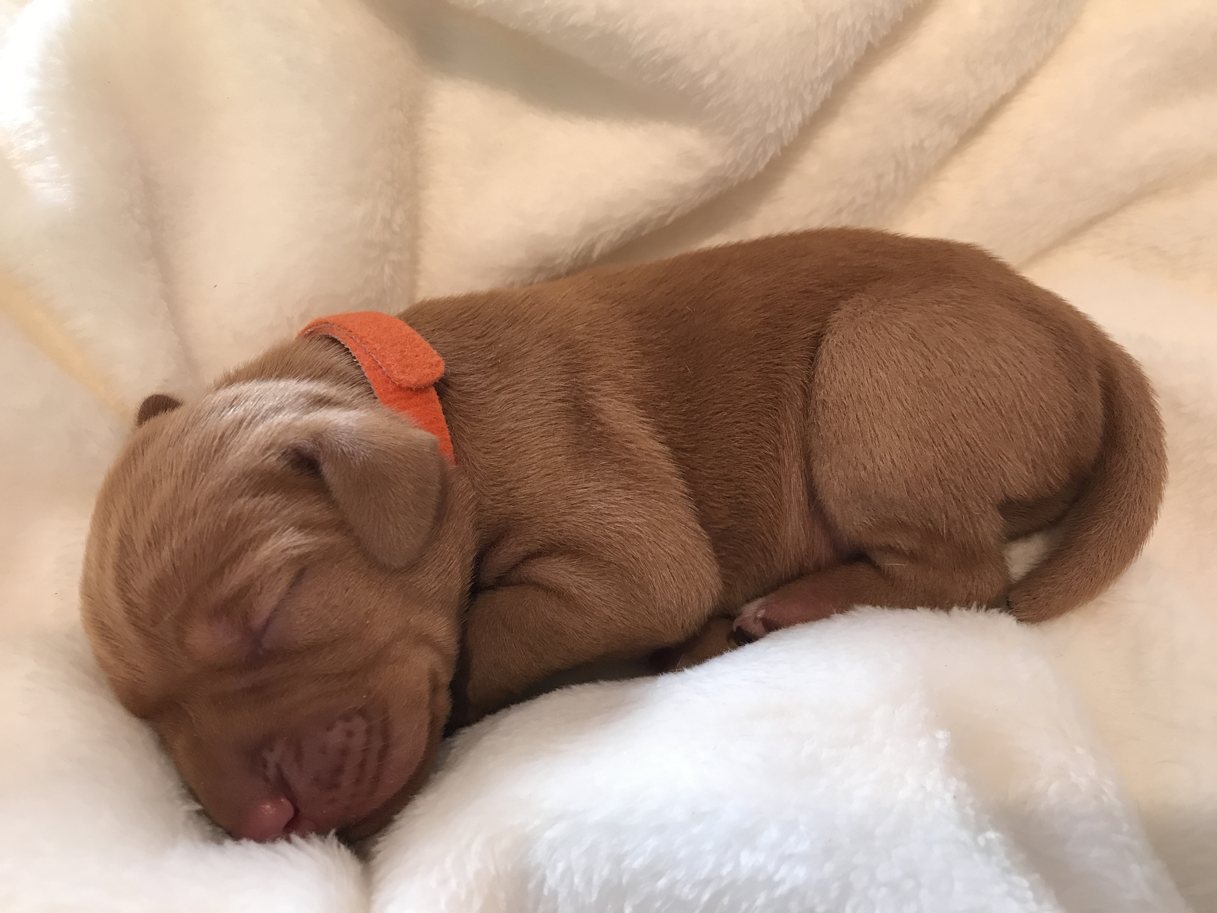 Welpe Nr. 7 "Mister orange" Uhrzeit: 21:40 Geburtsgewicht 400g semmelgelb + Brustfleck |