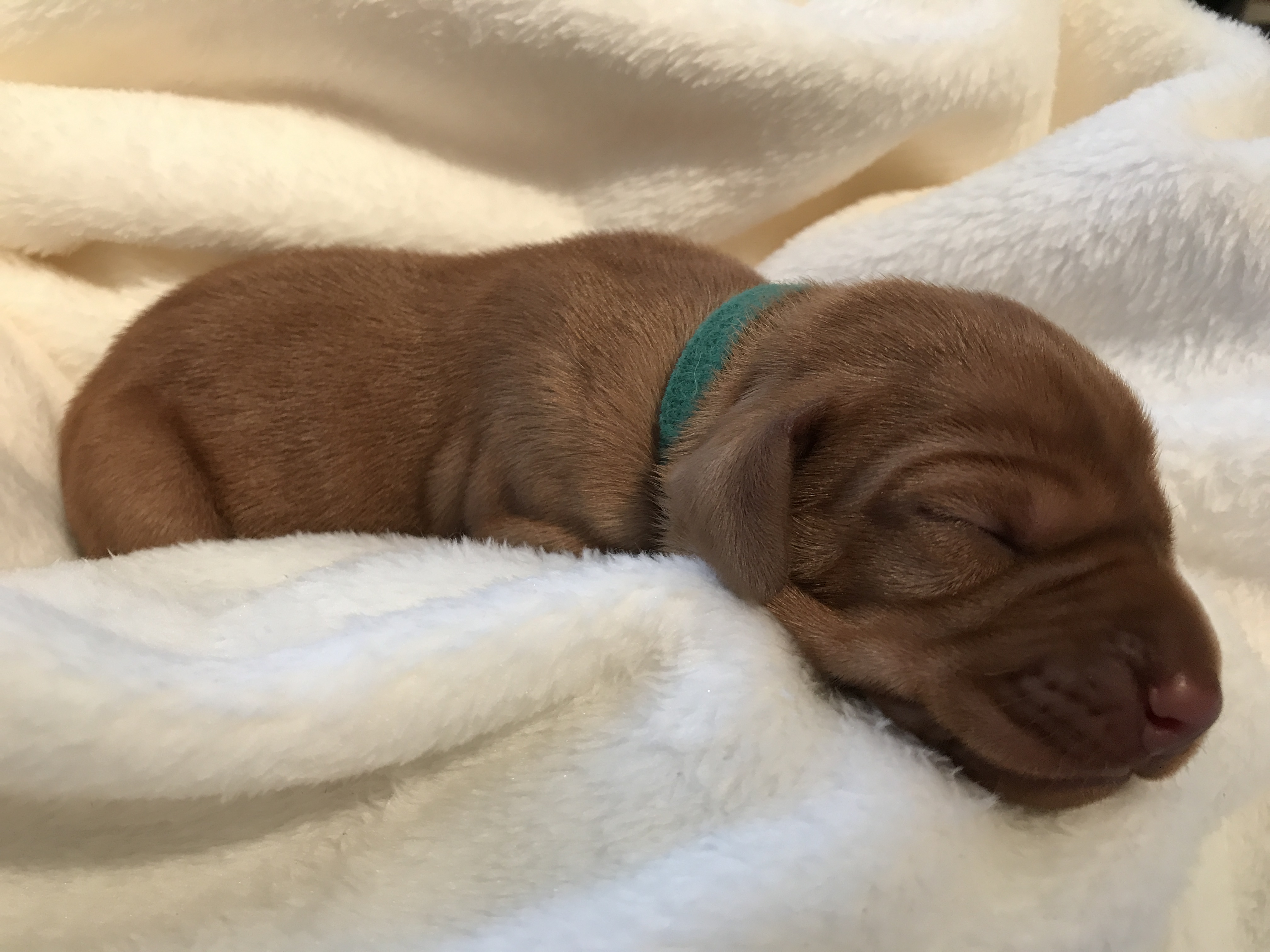 Welpe Nr. 2. "Mister grün" Uhrzeit 16:10 Geburtsgewicht 430 g semmelgelb |