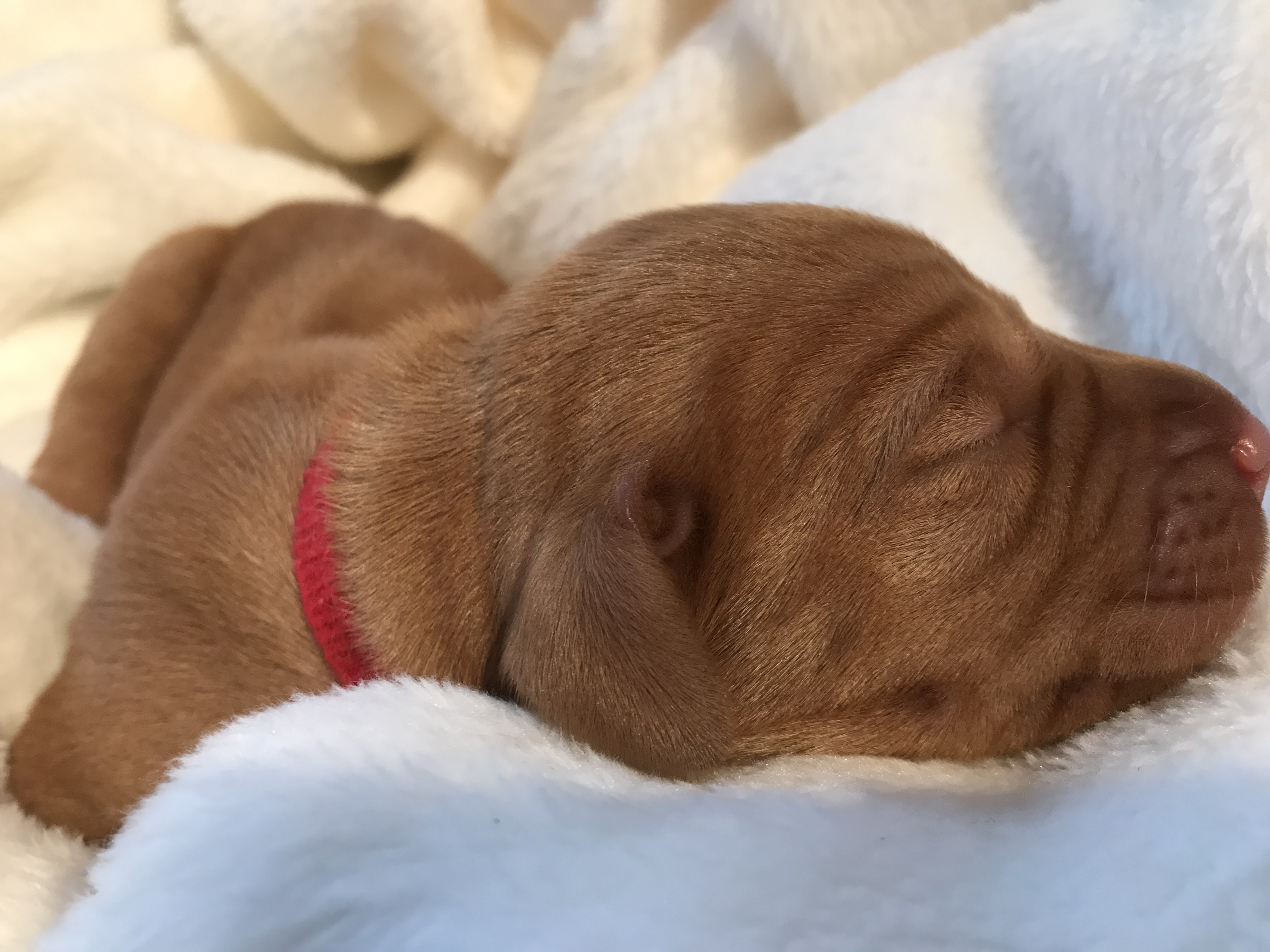 Welpe Nr. 1 "Misses rot" Uhrzeit: 14:55 Geburtsgewicht 480g semmelgelb |