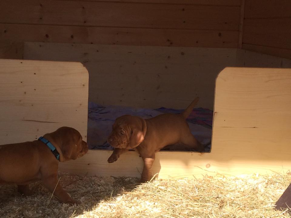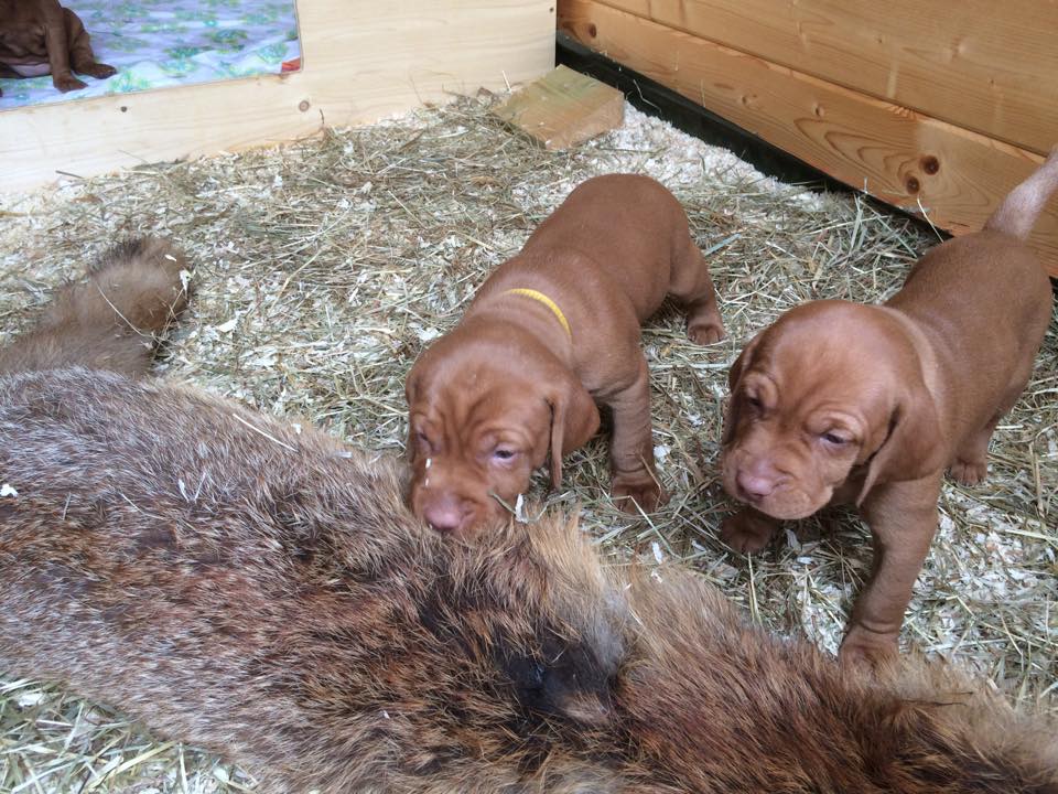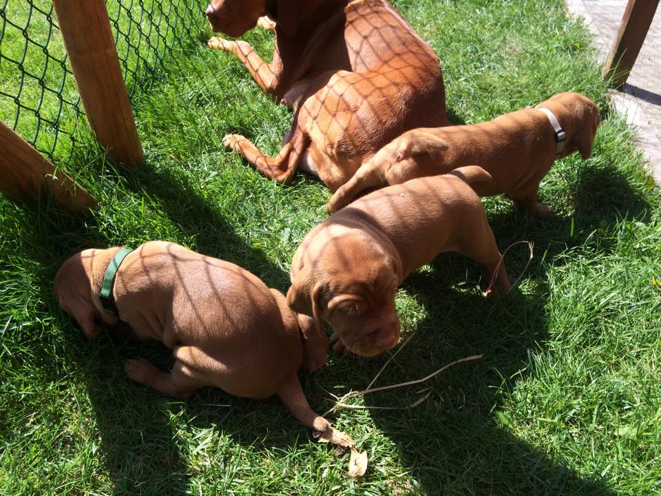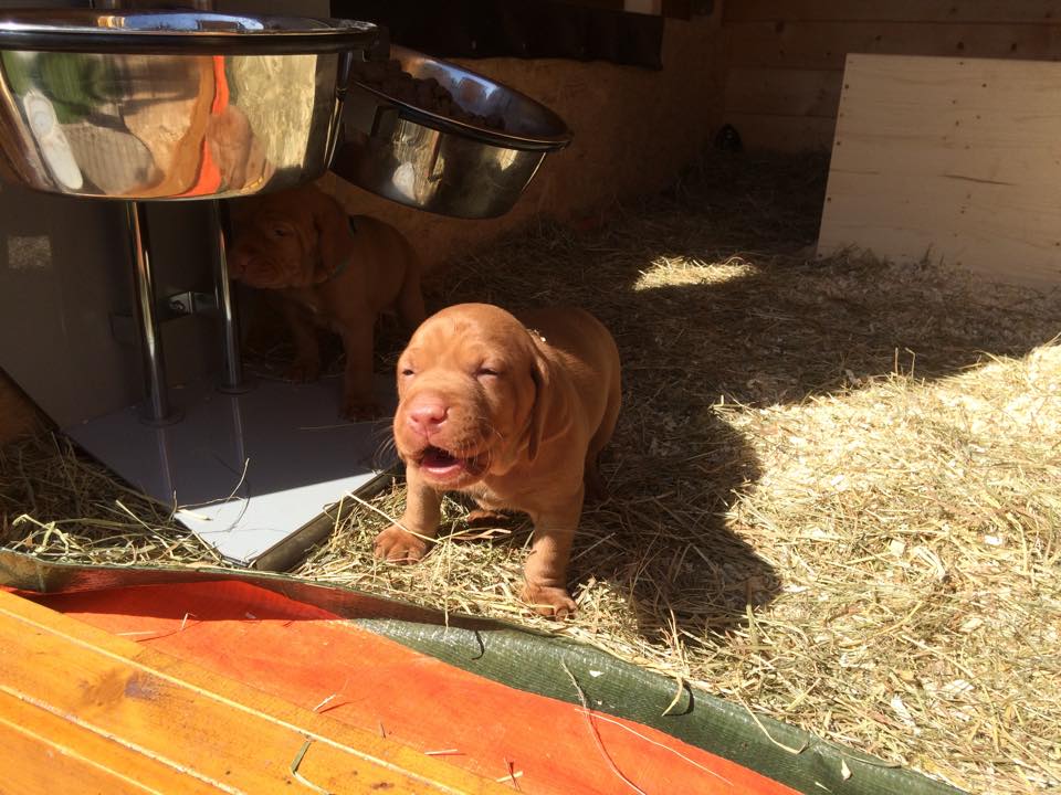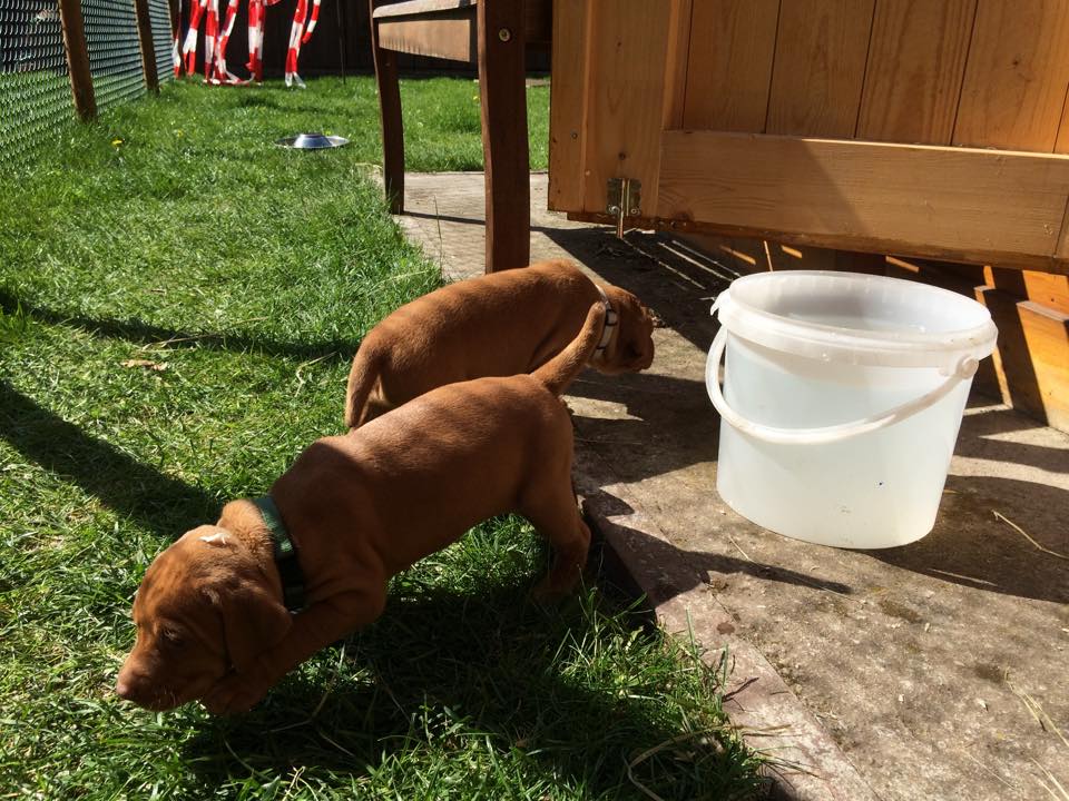 Jetzt haben wir eine ganze Weile nicht mehr geschrieben und die kleinen sind in dieser Zeit richtig viel gewachsen. Die ersten Erkundungsgänge ins Freie werden gewagt und alles wird ausprobiert, beschnüffelt und auch mal angeknurrt.