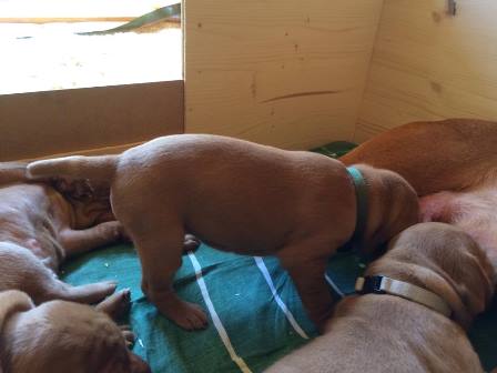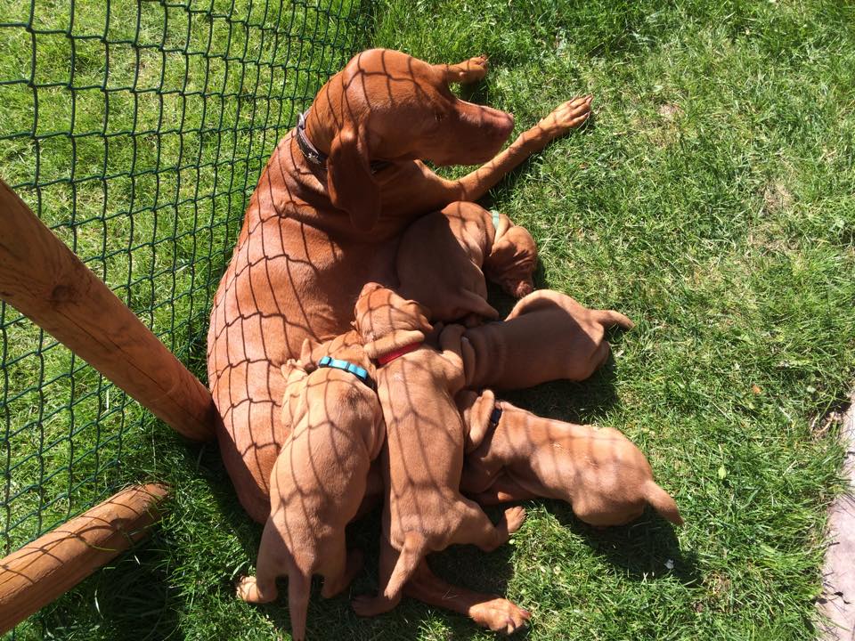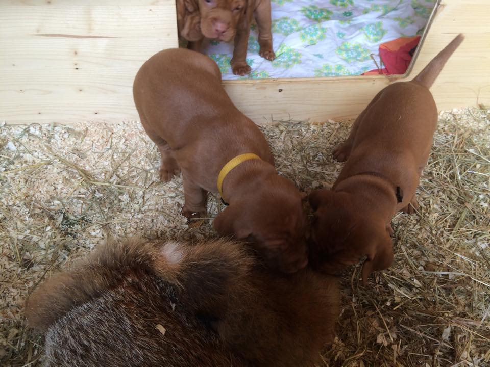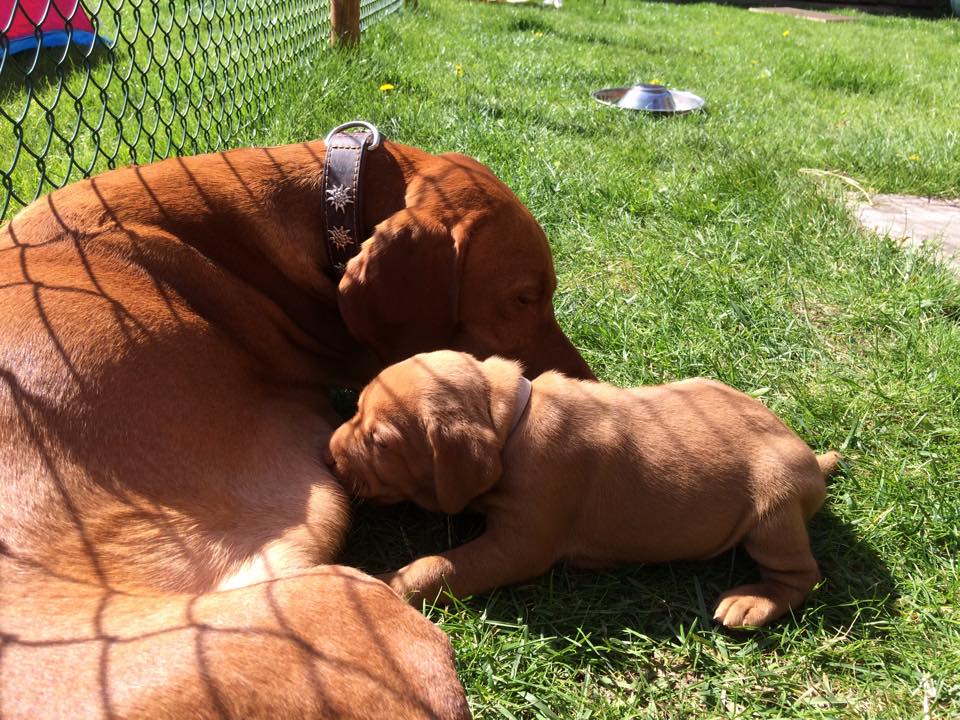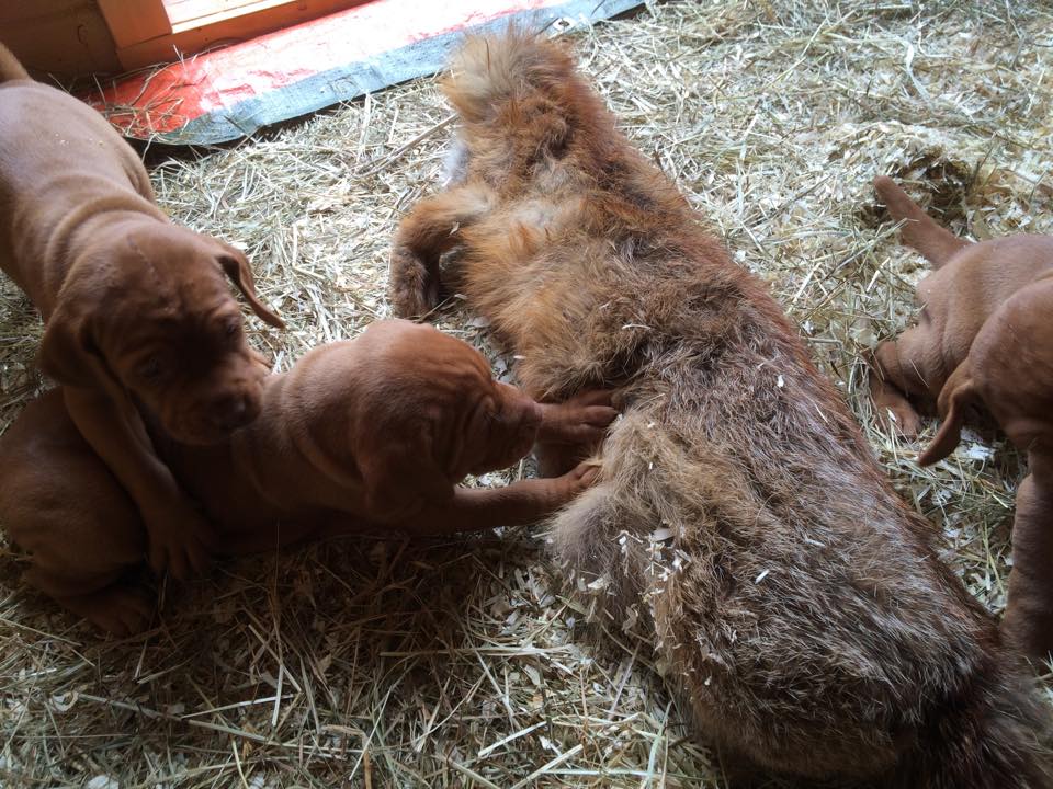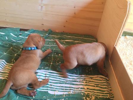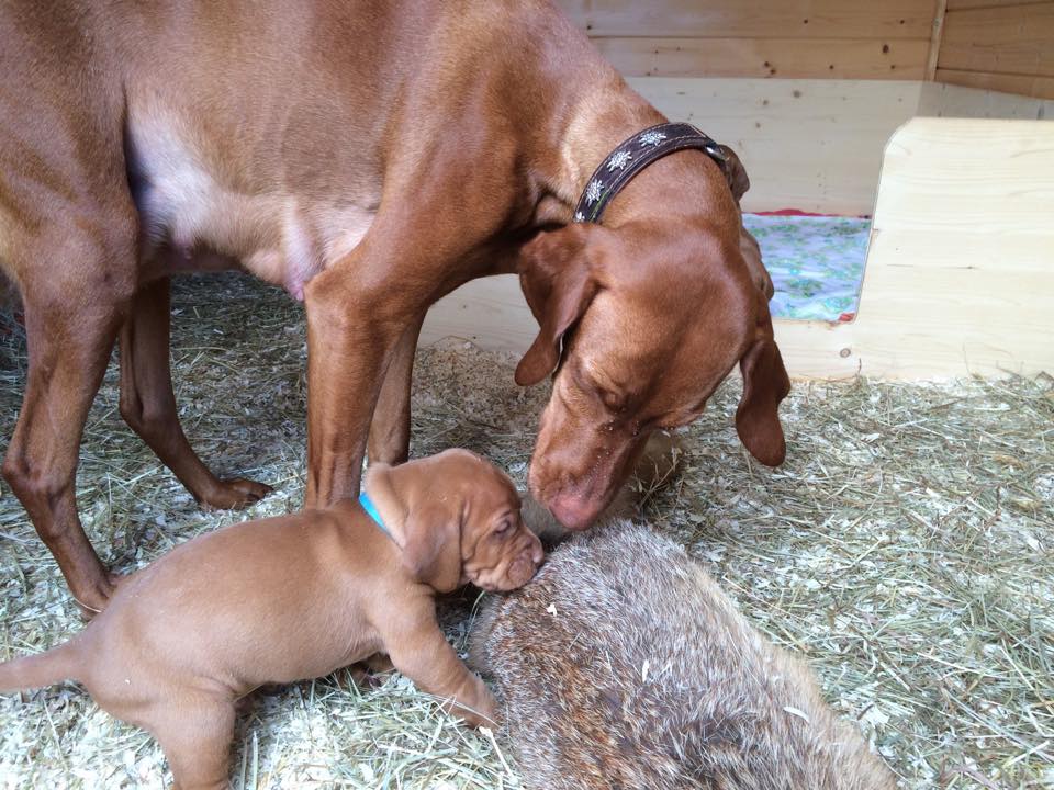 Jetzt haben wir eine ganze Weile nicht mehr geschrieben und die kleinen sind in dieser Zeit richtig viel gewachsen. Die ersten Erkundungsgänge ins Freie werden gewagt und alles wird ausprobiert, beschnüffelt und auch mal angeknurrt.